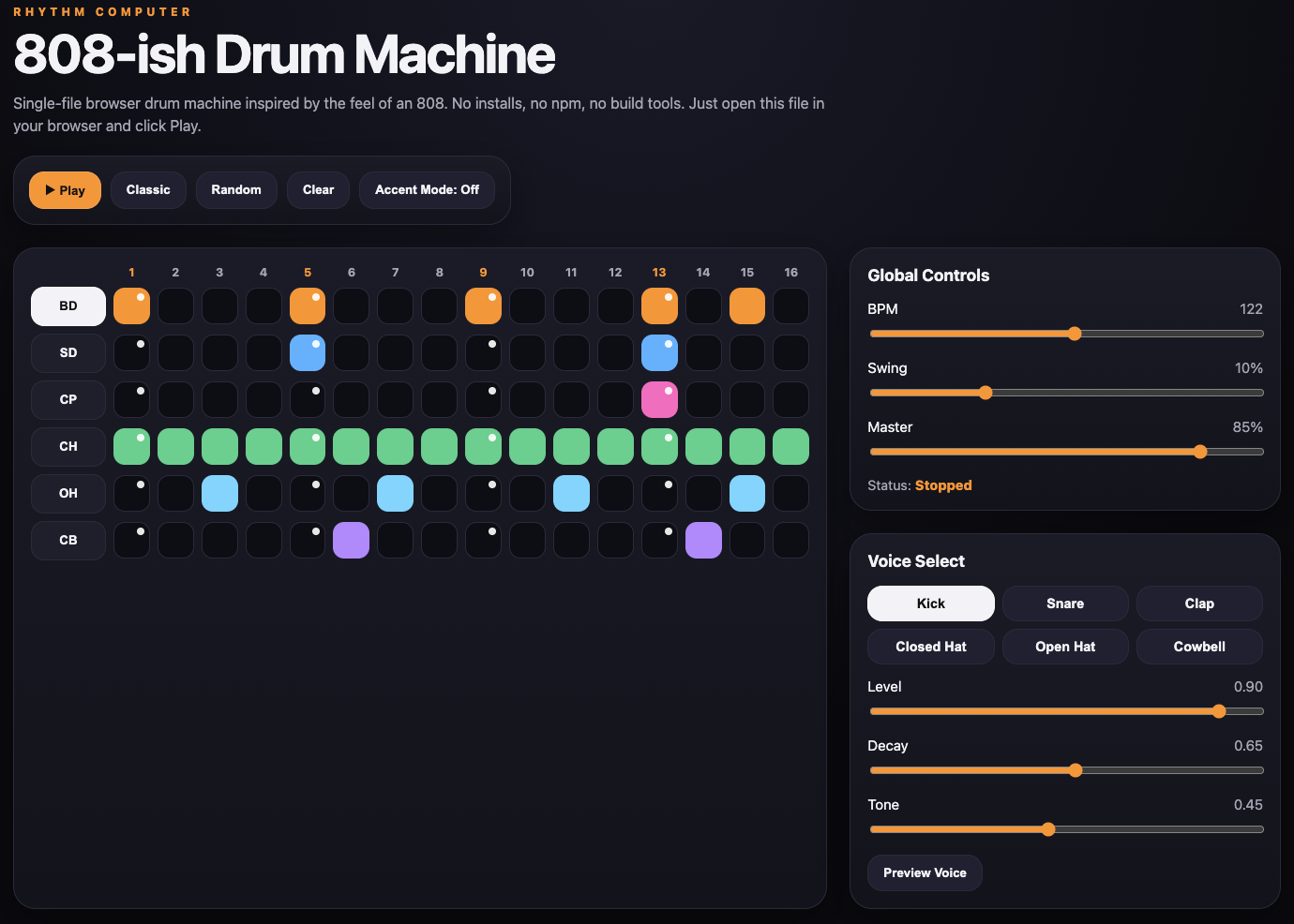 I know that AI is definitely one of those things that people either embrace or absolutely loath. I’ve joined on team embrace, and use it for quite a lot of random projects. Anything from create stupid images, fixing the code on my websites, helping re-write an email to sound less passive aggressive, writing up Powershell scripts, etc. Lately I’ve dived into some of the more useful things it can do like vibe coding, since I’ve heard all the kids raving about it. I was impressed at how quickly it can spit out something useful. For this project, I prompted ChatGPT “Create me an 808-ish style drum machine, in HTML5, and have it contained to 1 page/file”. And the results were rather impressive. Check it out.